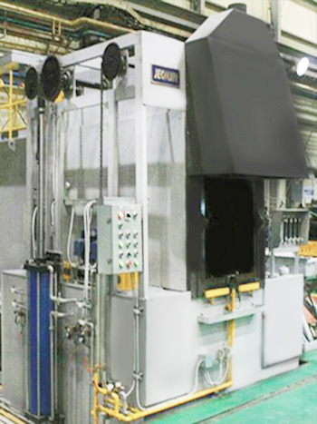 본 설비는 GAS침탄과 무산화 소입을 목적으로 전기가열식으로 구성되어 있습니다. 또한 로내의 온도와 분위기를 PROGRAM제어함으로써 장입-침탄-소입-추출 등의 일련의 작업을 자동으로 수행할 수 있습니다.