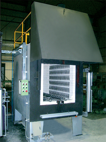 본 로는 ALL CASE FURNACE에서 처리된 재료의 소려(TEMPERING)로 입니다. 처리재의 가열원은 전열 HEATER입니다. 로내의 LINING은 시간비례 PID제어로써, STRIP형 HEATER의 적절한 배치에 의해 로내의 유효치수 내에서 ±5'C(공로승온시)를 만들 수 있습니다.